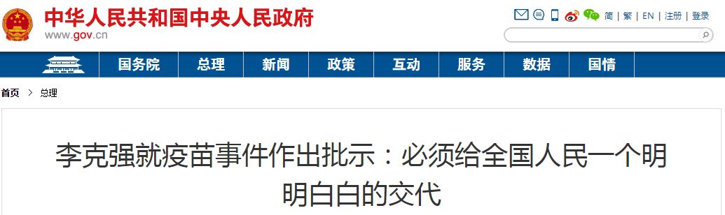 此前7月16日,李克强已就疫苗事件作出批示,要求彻查。